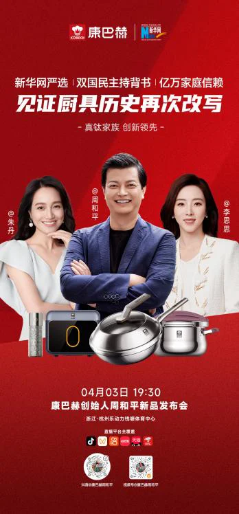 4月3日,康巴赫「真钛家族 创新领先」新品发布会在杭州圆满落幕。本次发布会由前央视主持人李思思、综艺一姐朱丹联袂助阵,获新华网严选背书。