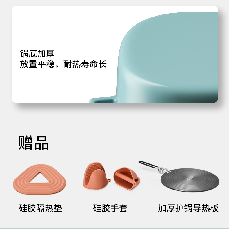 赠品:硅胶手套、硅胶隔热垫、加厚护锅导热板