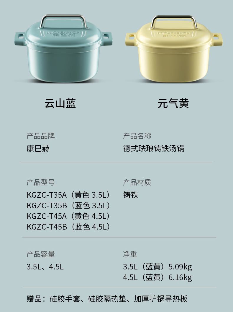 净重:3.5L(蓝黄)5.09kg4.5L(蓝黄)6.16kg