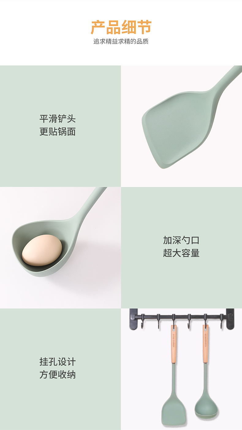 产品品名:静厨防烫系列榉木硅胶铲勺