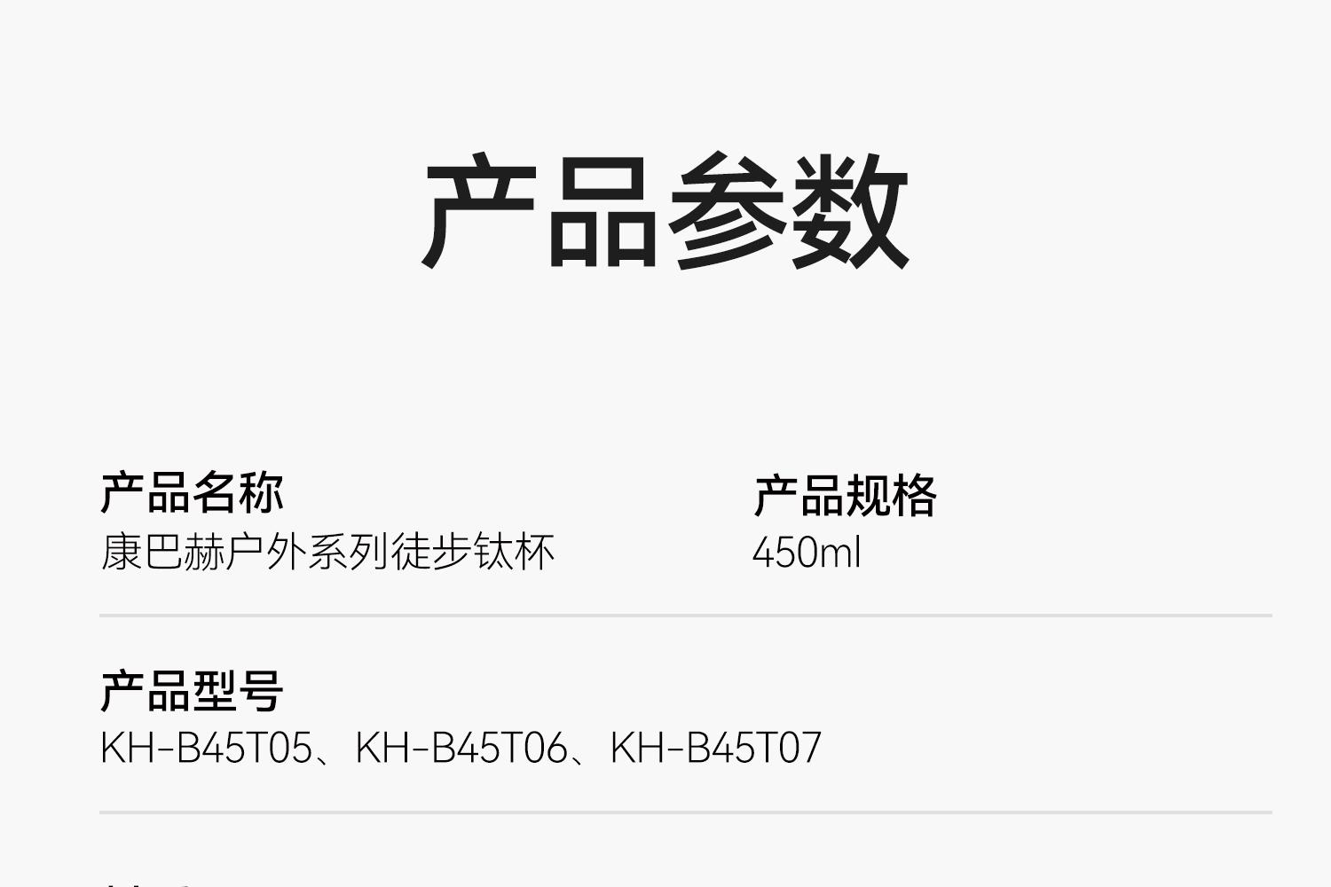 产品名称:康巴赫户外系列徒步钛杯