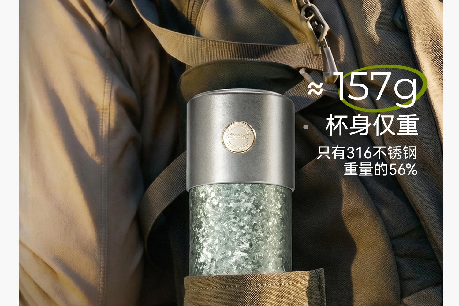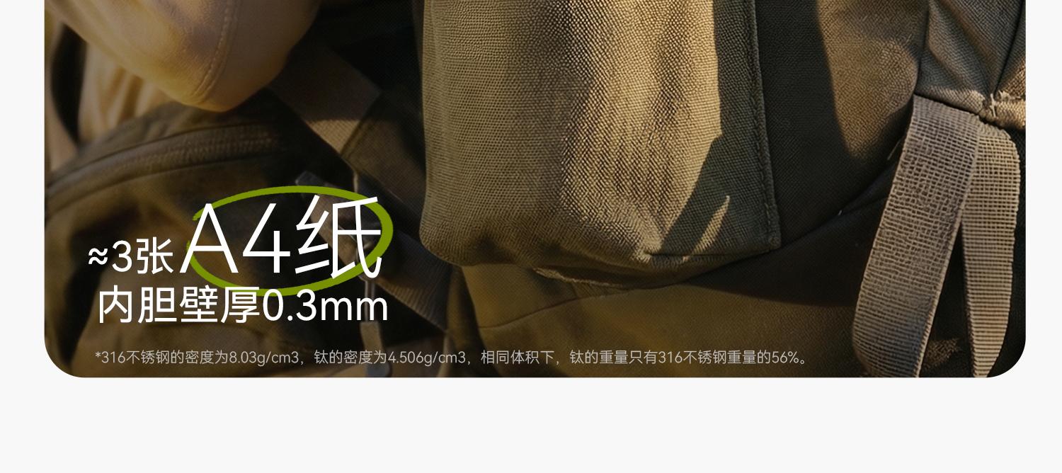 材质:杯身纯钛、内胆纯钛